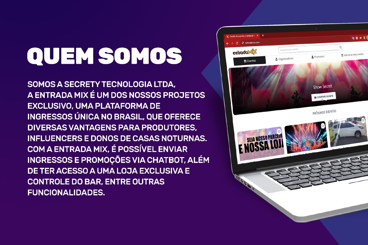 - Site exclusivo 🌐: Domínio próprio e subdominio (ex.: www.seusite.com.br) (www.festa.entradamix.com) para vendas e eventos personalizados.