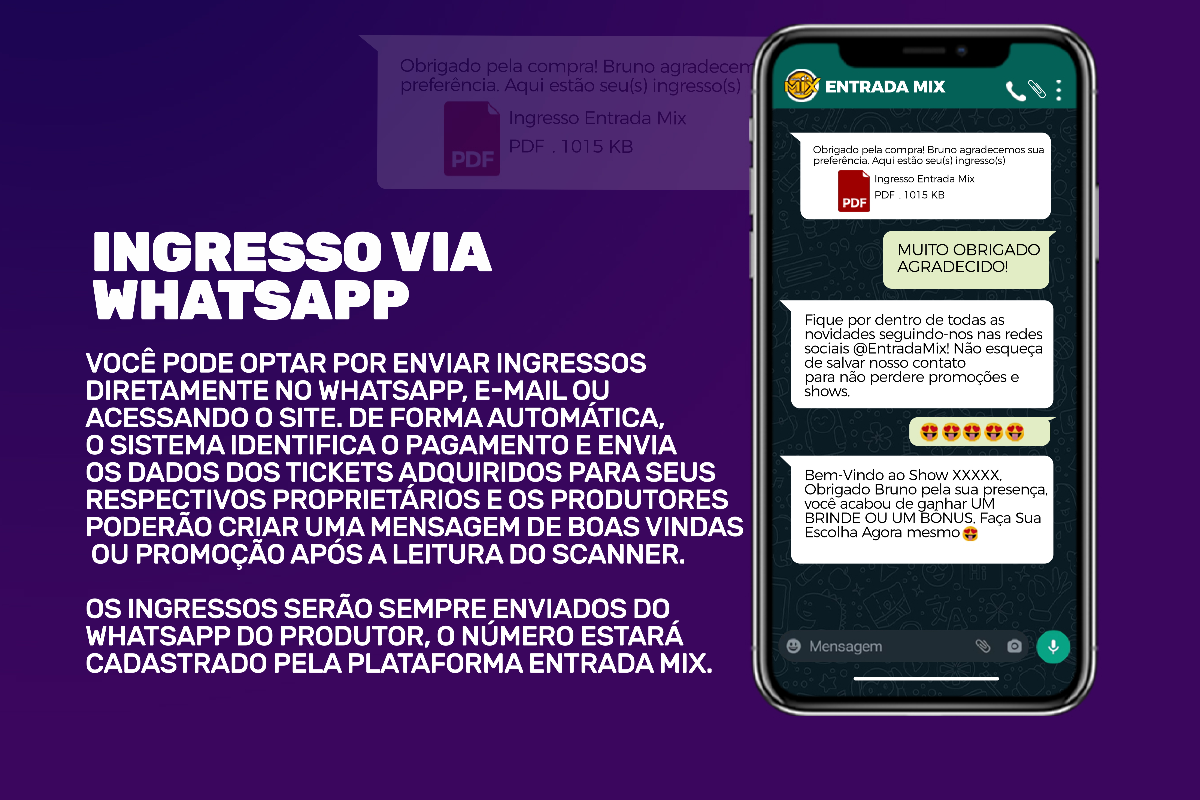 - Envio automático em PDF 📄: Ingressos e tickets gerados e enviados em segundos, com QR Code pronto para uso.